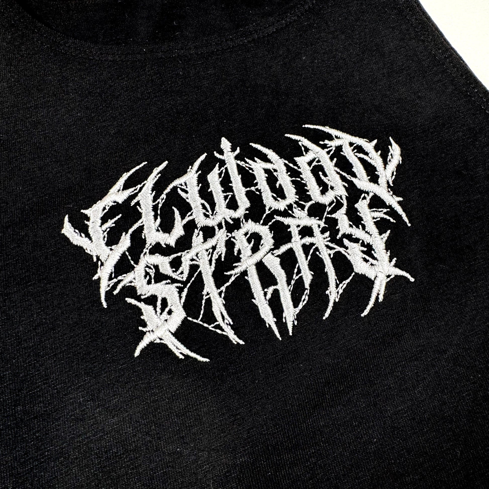 Single Jersey Crop Top with embroided deathcore Elwood Stray logo.